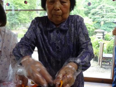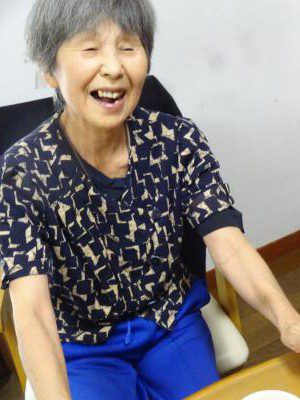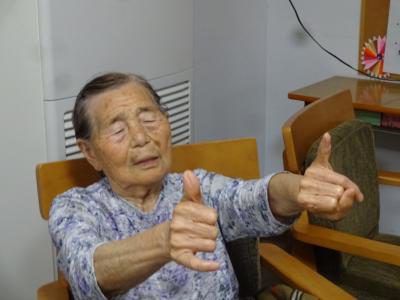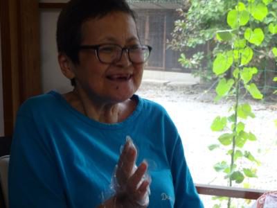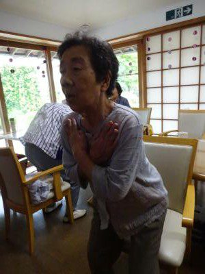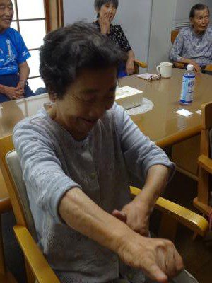 お母さん、手指の体操で悪戦苦闘中