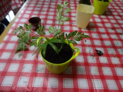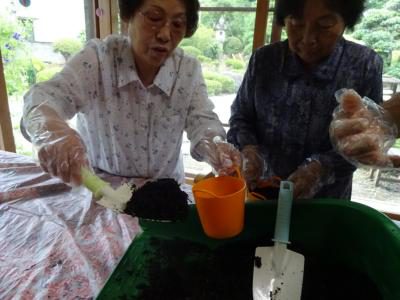 ポットに土を入れて・・・