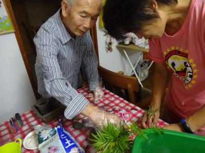 午後からのレクリエーションは( ^ω^)・・・ミニ盆栽