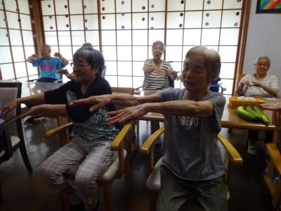 美味しいお昼ご飯を食べた後は元気に体操から始めましょう(∩´∀`)∩