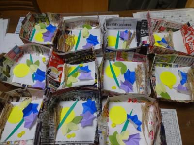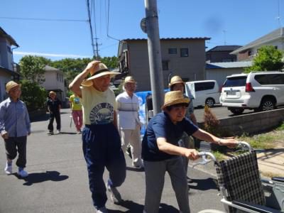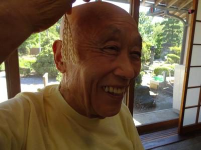 あれあれ❔ お父さんススキになる紐を頭に付けてますね(笑)