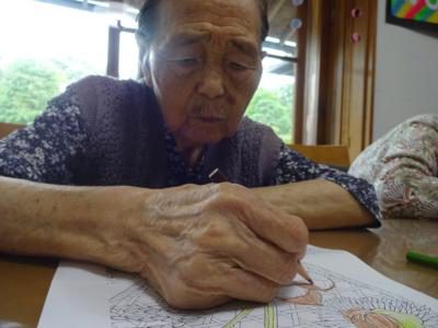 午後のレクリエーションは色鉛筆を持って( ^ω^)・・・