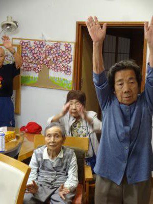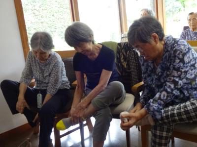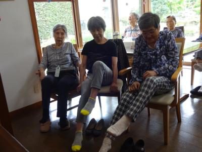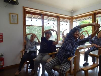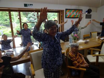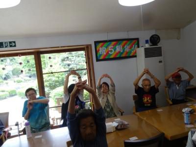 まずは、本日も歌謡体操で午後の眠気に別れを告げましょう手 (パー)