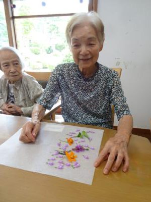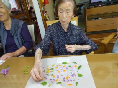 今日は押し花💮作りですね。皆さんたち真剣にやっておりますね。