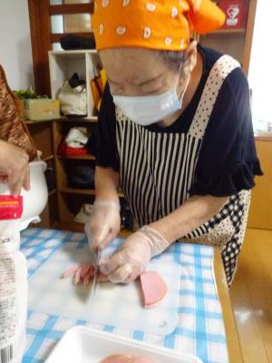 お昼ご飯を皆さまで作って頂きます