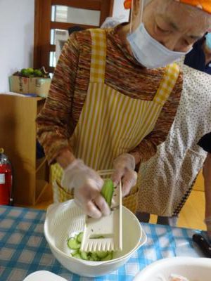 キュウリをスライスして・・
