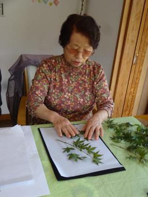 こちらのお母様方は、紅葉を使って、さぁどうしましょうか・・・