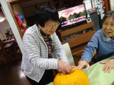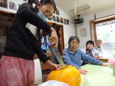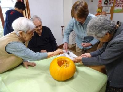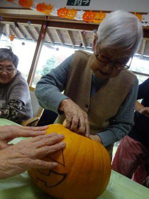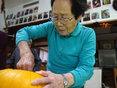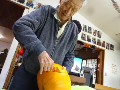 しっかりと体操したあとは、まずジャック・オ・ランタン作りから始めていきます