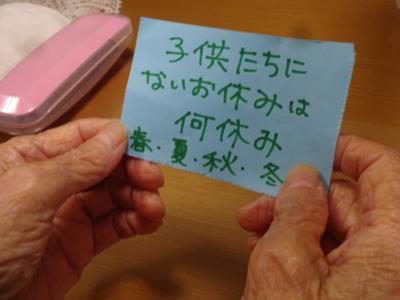 紙にクイズが書いてありますので1枚引いてくださいね