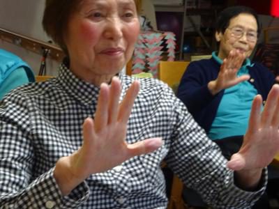 みんなで声を出し手指の体操ですわーい (嬉しい顔)