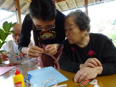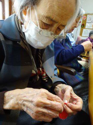↑爪楊枝でボンドを付ける細かい作業ですが、集中して、可愛くデコレーションして下さいました