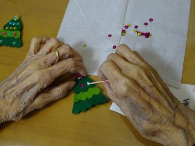 ↑お母さんには、ミニツリーの飾り付けをお願いしました