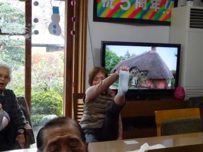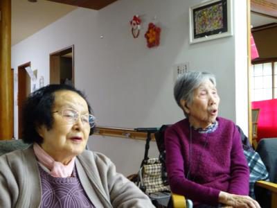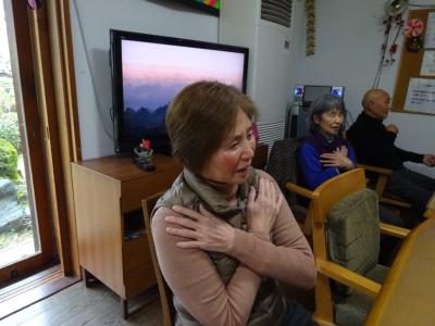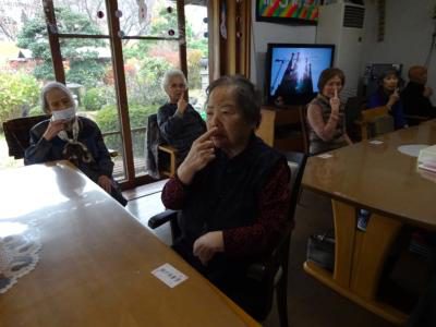 歌を歌って口腔体操です