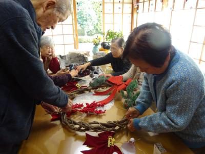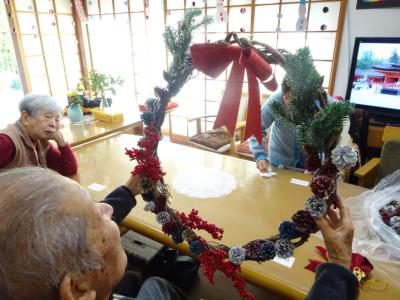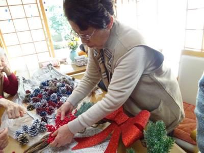 今日は望みの幸望庵に飾る用で大きいリース作りを