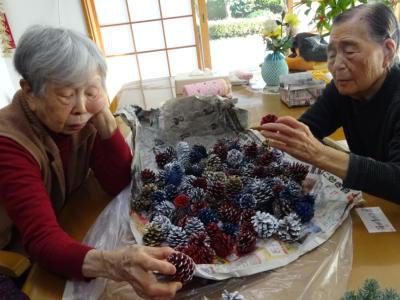↑飾りの松ぼっくりも色々な色や大きさの物を準備しました