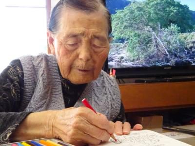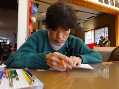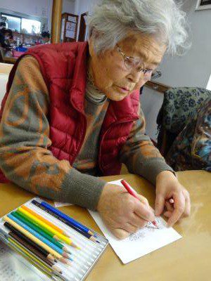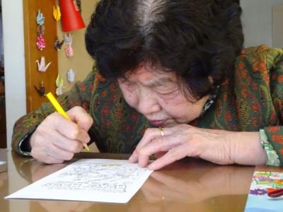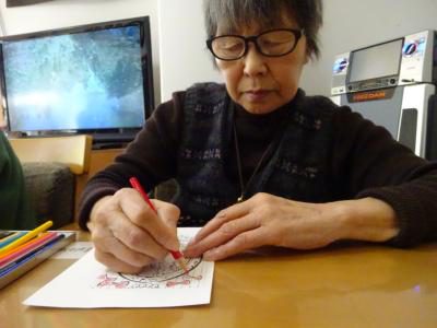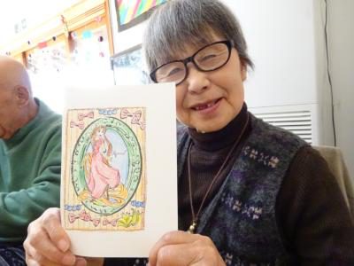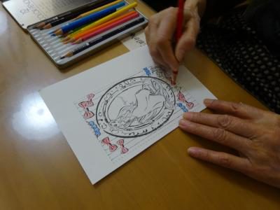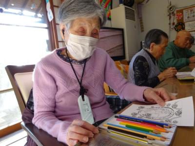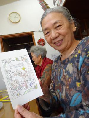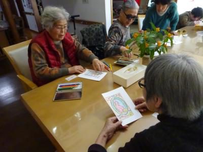 本日のレクリエーションは「ハガキぬり絵」です