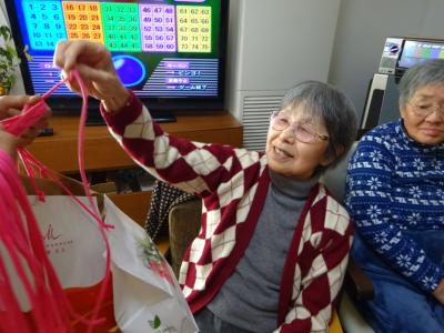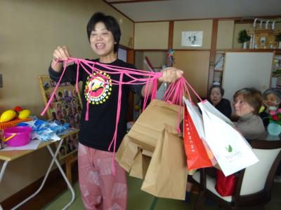 これからビンゴであがった順にひく袋引いていただきますねプレゼント