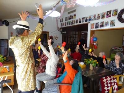 1曲ごとに手を最低2回挙げ、マラカスも全力で振り、トークでは大笑いし、午前の運動より運動してるんじゃないか?っと思います(笑)