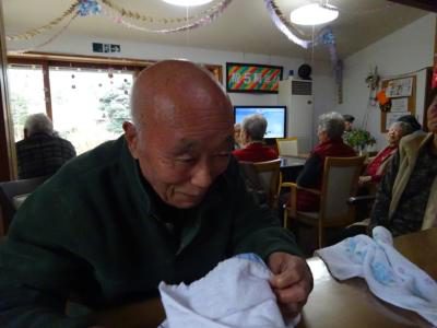 うちわを上手に使ってダルマをお隣さんへ片手だけ使って