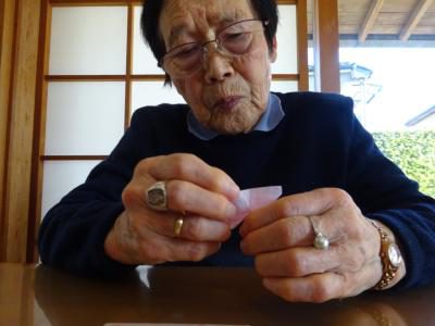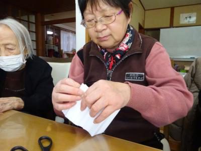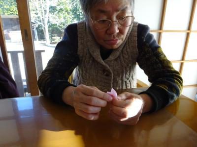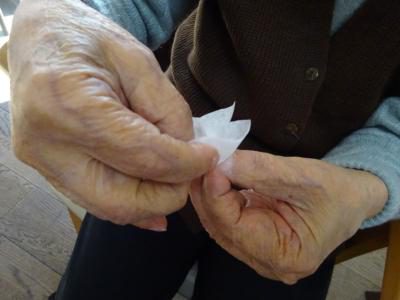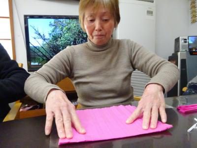花びら作りも折って切って大きさを合わせていきます