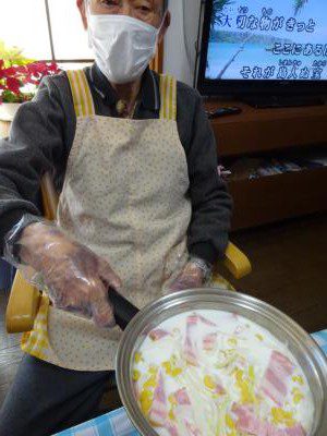 おいしくなれと愛情を注ぎながら混ぜてくださいました