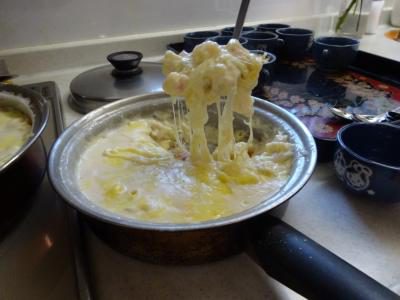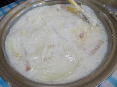 先ほどの玉ねぎベーコンを鍋に入れて・・・