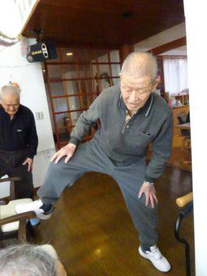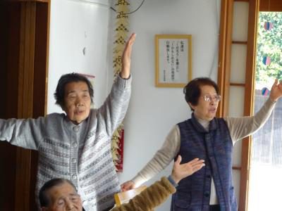 運動の締めくくりは「サザエさん」の曲に合わせてリズム体操るんるん (音符)るんるん (音符)