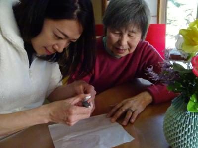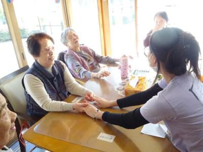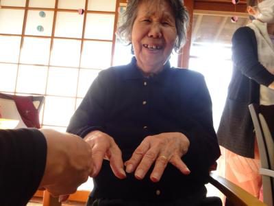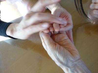 ↑最初は「昔から働き通しで指は太いし、しわしわだから手を出すのが恥ずかしい・・・」っとおっしゃっていましたが、マッサージを受けて見たら「気持ちいい目がハート (顔)」っと喜んで下さいました揺れるハート