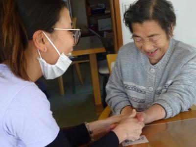 例え指が太くても、例えしわしわでも、頑張って働いて来た手を私はステキだと思いますほっとした顔