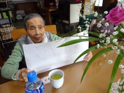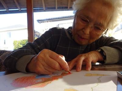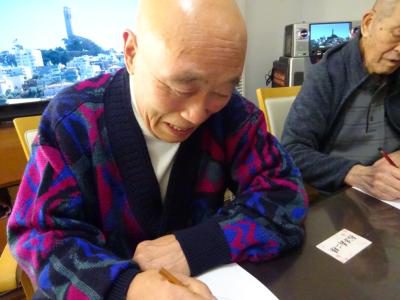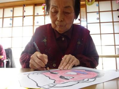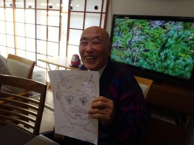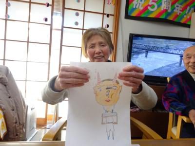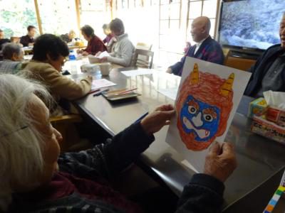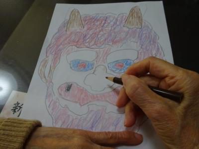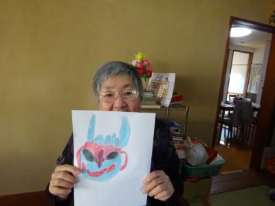 午後のレクリエーションは節分も近いので皆で、鬼の顔を