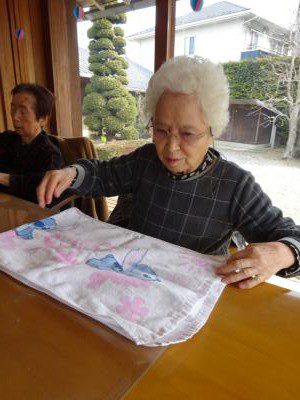 みんなでタオルたたみどちらが早くたためるか