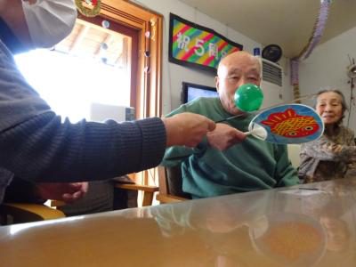その後は、うちわを使ってボール回しですね