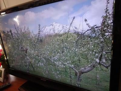 ↑↓画面に映るリンゴの花を見せてくださいました