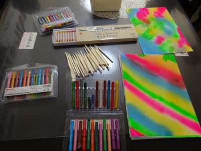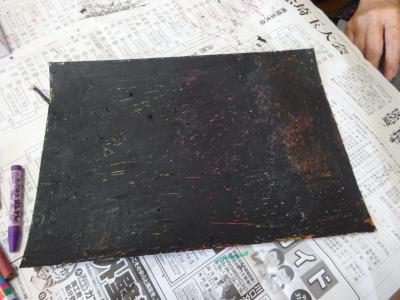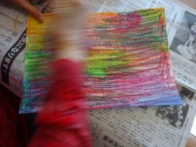 その紙にクレヨンで色を色々重ね塗りして下さい