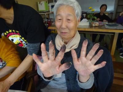 手がまっくろ~~~~~