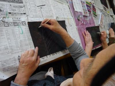 さあ、先がとんがった割りばしを使って絵を描いて下さい