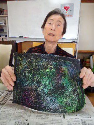 皆様に綺麗にペイントしてある紙をお配りしますね