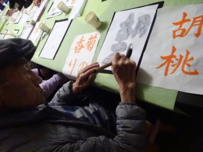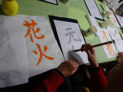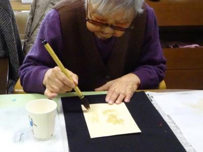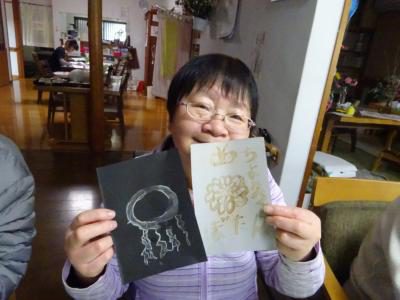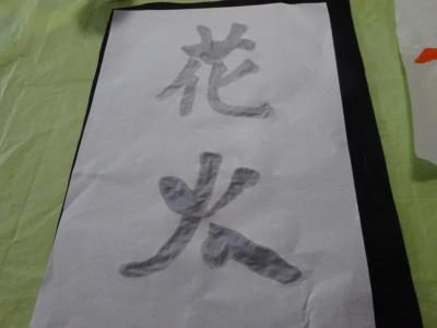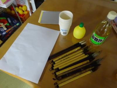 半紙にはレモン水で字を書きました