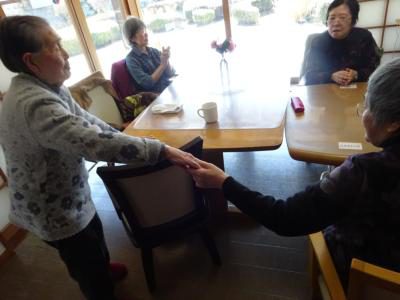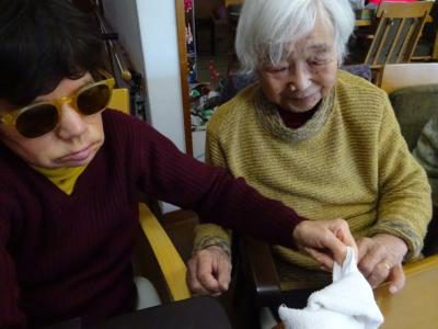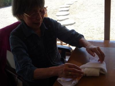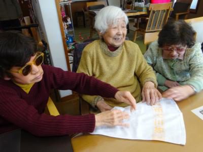 脳トレーニングの後は手指を使ったタオル体操です