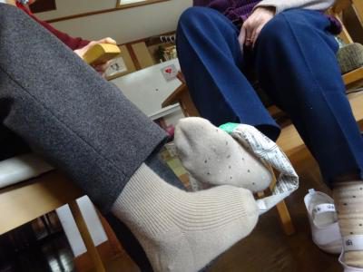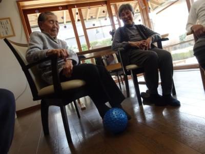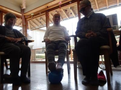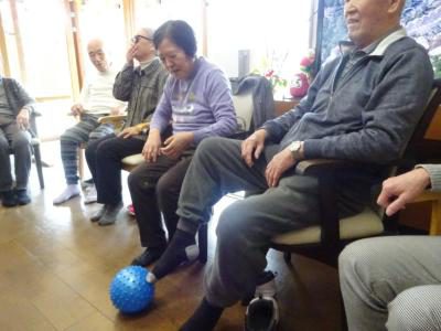 ボツボツボールを使って足の裏で転がしてみたり・・