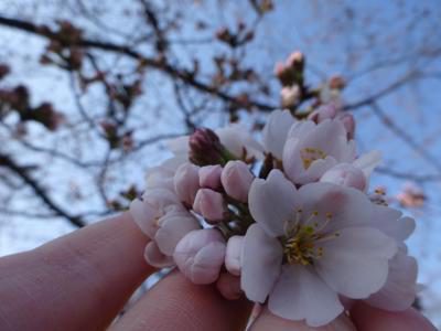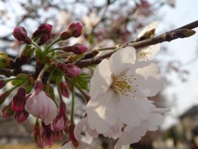 桜の花も、ぽつぽつと咲いてきましたねーー