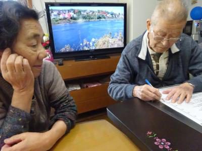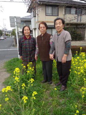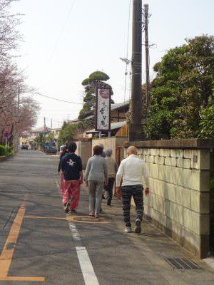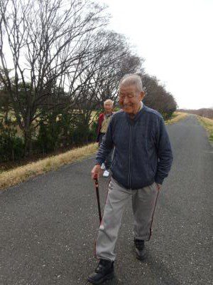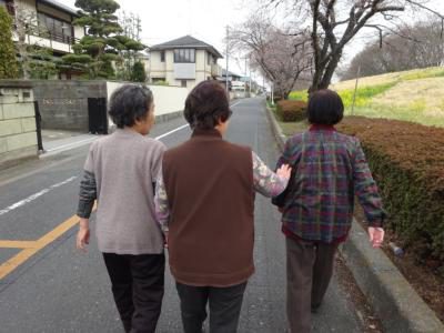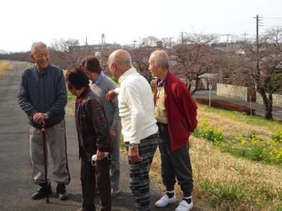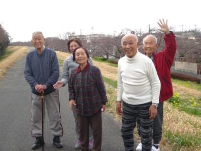 土手沿いをお散歩し、テクテク戻る父・母たち