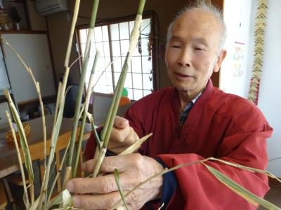 お父さんが、杉玉鉄砲の材料を持って来て下さいました