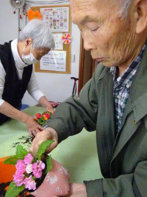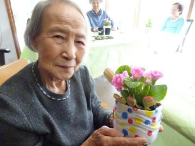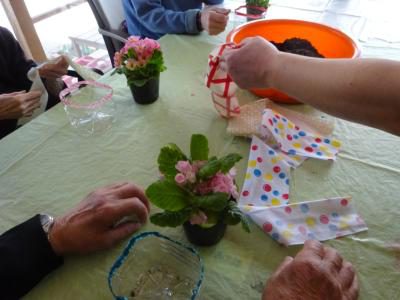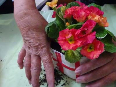 出来た鉢の中にお花を入れますグッド (上向き矢印)グッド (上向き矢印)