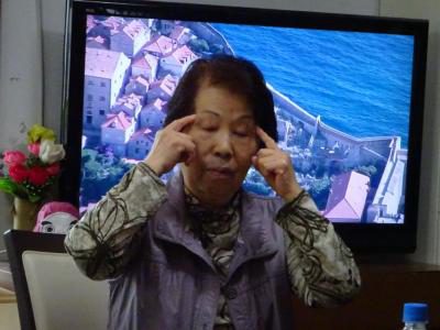 お母さんは、マイペースに目の周りをマッサージ中
