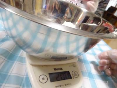 お次はホットケーキの粉、200gを量ります