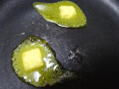 生地が仕上がったら、フライパンにバターを溶かして。。