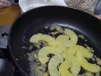 少しかき混ぜてから、パイナップルをきれいに敷き詰めて