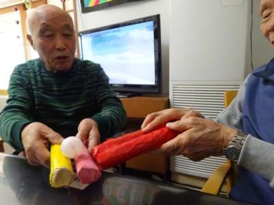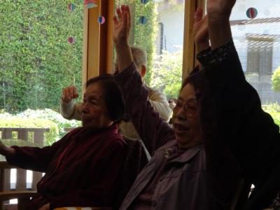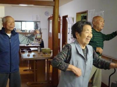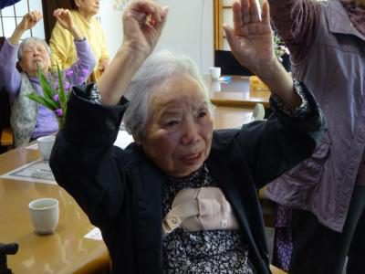 体操の終わりは、「肩たたき」の歌をみんなで歌いながら