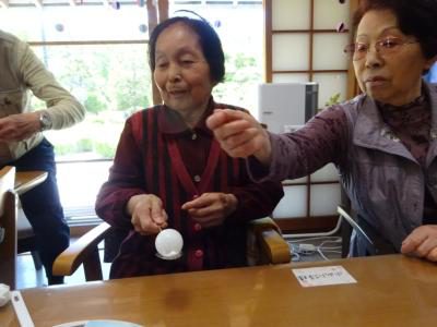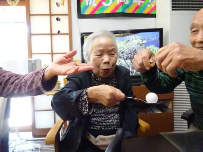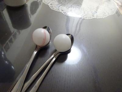 スプーンと卓球の玉を使って遊びましょうわーい (嬉しい顔)
